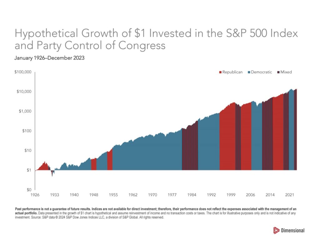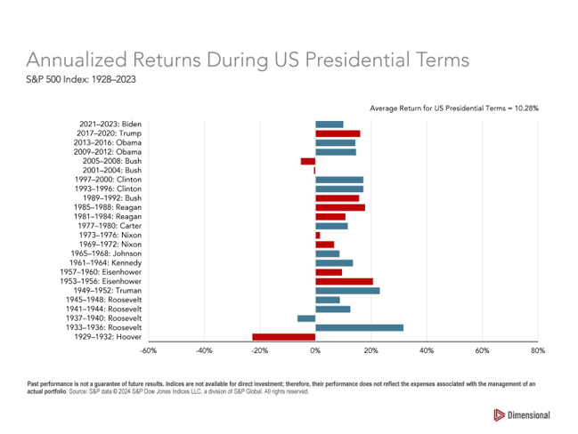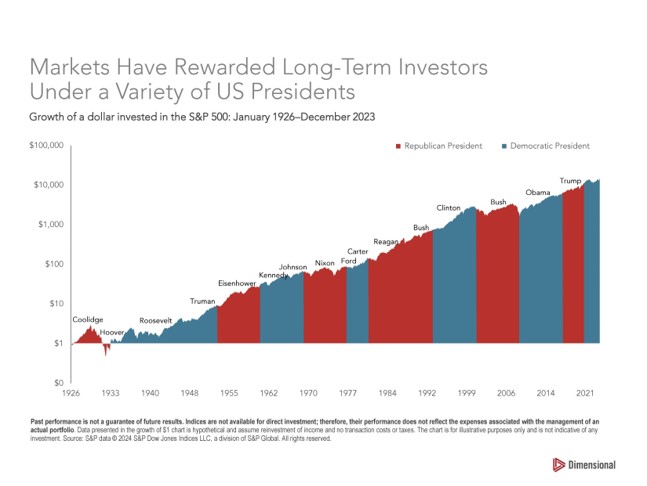 It’s US election time coming up, and as the US is a major area of the world portfolios are invested in, these graphs are worth taking note of and ‘just getting invested’, controlling what you can control and not worrying about what you cannot.