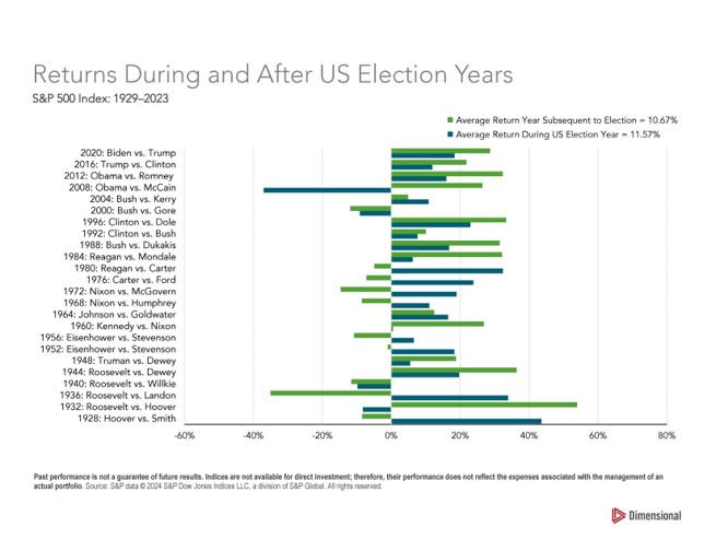 And what about the S&P 500 Index returns DURING and AFTER US election years: