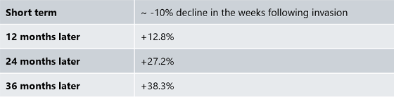 1 All return calculations, including those in the conflict summary table that follows, are based on monthly returns of the S&P 500 Index (total return) and include the return of the month the conflict commenced.