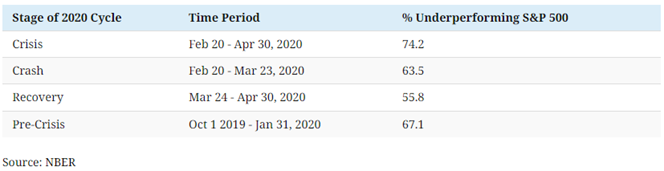 In better news, roughly half underperformed through the recovery, the best out of any market condition that was studied.